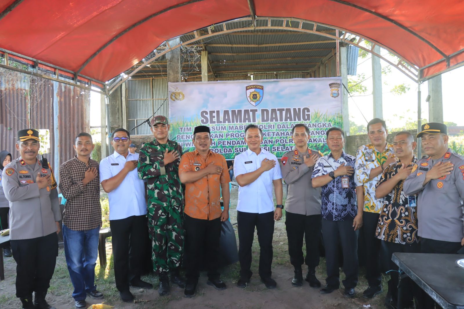 Acara yang dimulai pukul 16.00 Wita ini turut dihadiri sejumlah pejabat penting, seperti Irwasda Polda Sulsel KOMBES POL Z. Agus Binarto, S.I.K., M.Si, Kapolres Takalar AKBP Supriadi Rahman, S.I.K., M.M., Wakapolres Takalar, Kabag SDM, para PJU Polres, Danramil 1426/05 Marbo, Camat Marbo, Kadis Pertanian, Kepala Gudang Bulog, serta Bhabinkamtibmas dan Babinsa Desa Bontomanai.