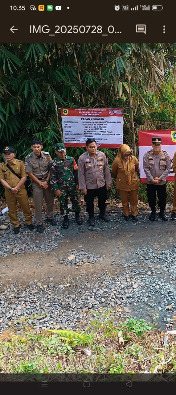 Pemerintah desa beserta perangkapnya selalu kompak dan genjot terus untuk pembangunan jalan desa pabangbon di antaranya pembangunan pengerasan jalan desa Dan pengaspalan dan sarana pendukung di berbagai titik untuk titik ke satu yang sudah selesai di kerjakan.ujar kepala desa pabangbon selasa -29-07-25)