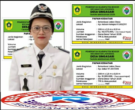 Pemerintah Desa Singasari, Kecamatan jonggol, Kabupaten Bogor, saat ini sudah menuntaskan betonisasi Jalan Lingkungan di tiga titik lokasi, yang bersumber dari dana desa tahap Iai tahun anggaran 2025, salah satunya berlokasi di Kampung Malati RT 01 RW,8, tepatnya di Dusun 4, yang dikerjakan melalui tim pelaksana kegiatan TPK dan Masyarakat.