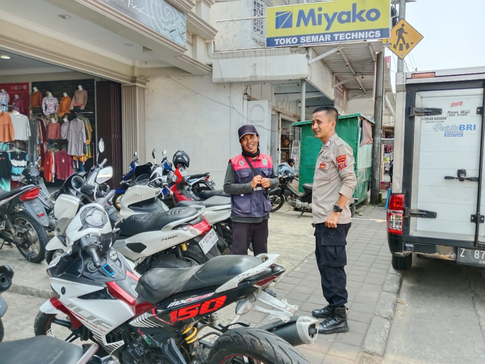 Sambangi Petugas Parkir, Bhabinkamtibmas Polsek Cikijing Sampaikan Imbauan Kamtibmas