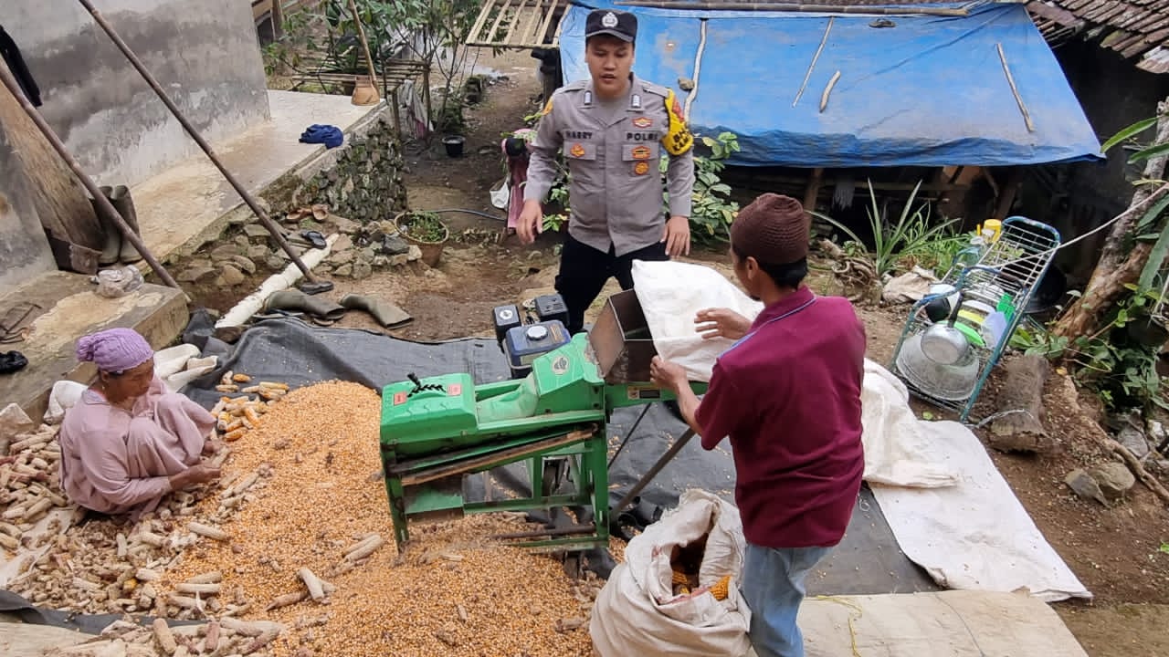 Majalengka – Bhabinkamtibmas Polsek Cikijing Polres Majalengka Polda Jabar Bripka Harry melaksanakan kegiatan pendampingan merontok, pengeringan, dan menggiling jagung pasca panen di Desa Kancana, Kecamatan Cikijing, Kabupaten Majalengka, Rabu (30/07/2025).