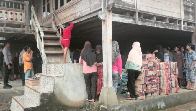 Bantuan berupa 100 sak beras ukuran 5 kilogram, 50 dus mie instan, dan 50 dus air mineral langsung dibagikan kepada masyarakat yang terdampak banjir di wilayah tersebut.