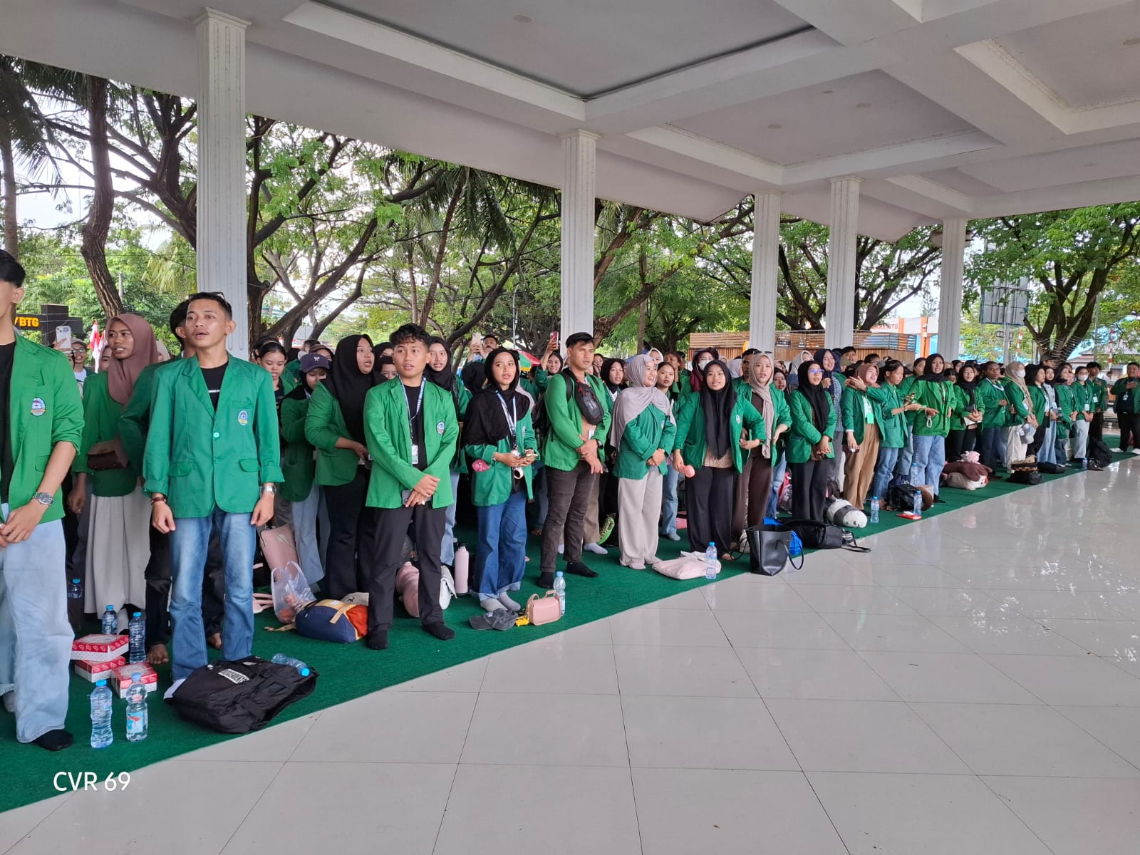 Bupati Bantaeng, M. Fathul Fauzy Nurdin menerima sebanyak 802 mahasiswa Kuliah Kerja Nyata (KKN) Tematik Angkatan 18, Universitas Megarezky Makassar, di Tribun Seruni, Bantaeng, Jumat, 1 Agustus 2025.