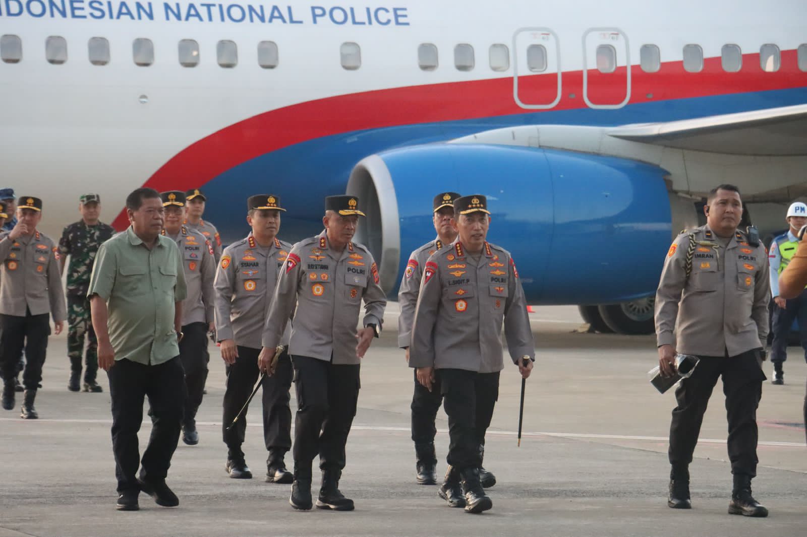 Jenderal Polisi Listyo Sigit Prabowo sampai di BIJB Kertajati Majalengka pada Sabtu (2/8/25) yang di sambut oleh Kapolres dan Kapolda Jabar, Pejabat utama Polda Jabar, Unsur Forkopimda Majalengka, para pejabat TNI, dan Kapolri akan menghadiri Haul di Ponpes Buntet Cirebon.