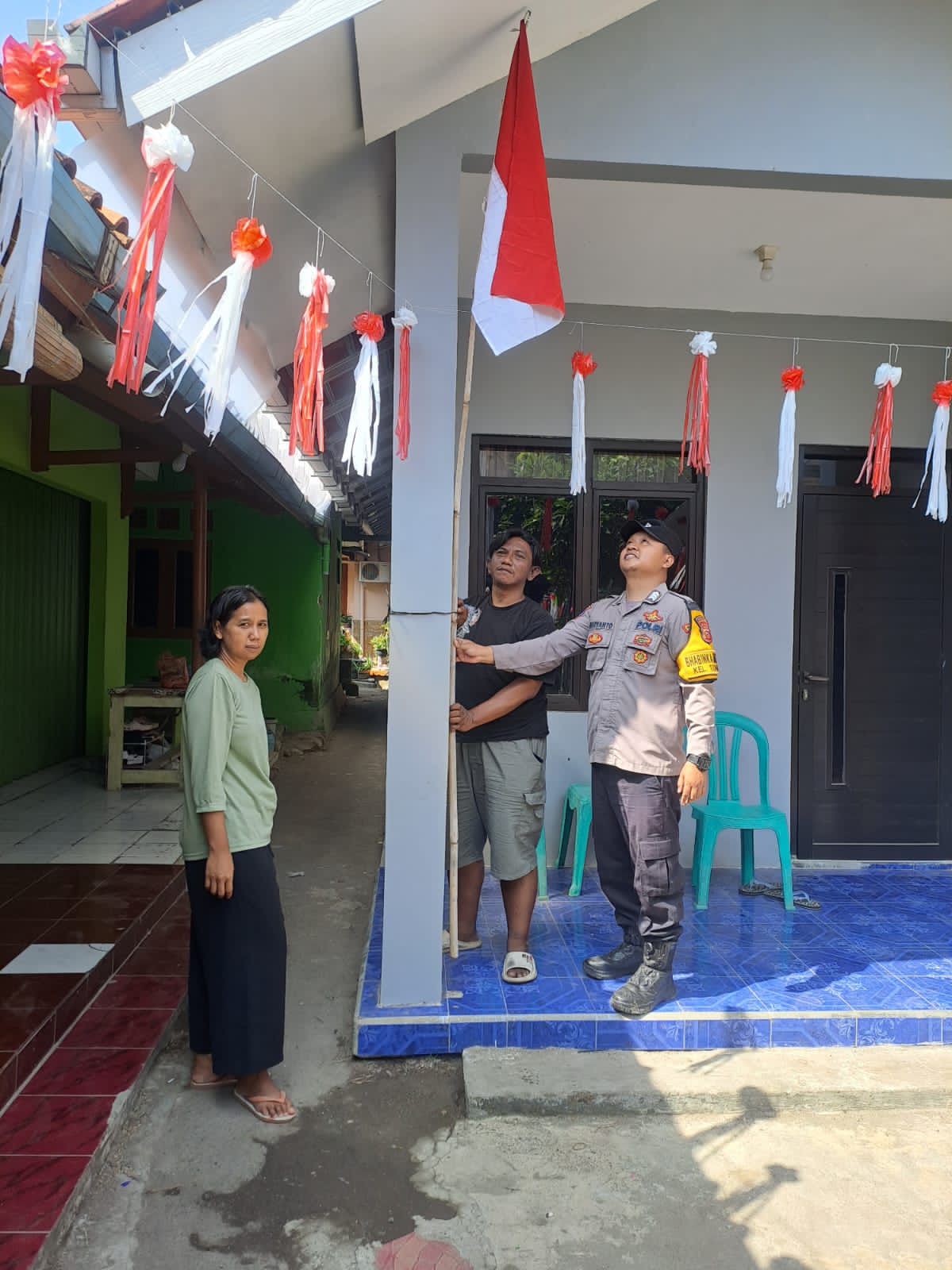 Sambut HUT RI ke-80, Bhabinkamtibmas Kelurahan Tonjong Ajak Warga Pasang Bendera Merah Putih
