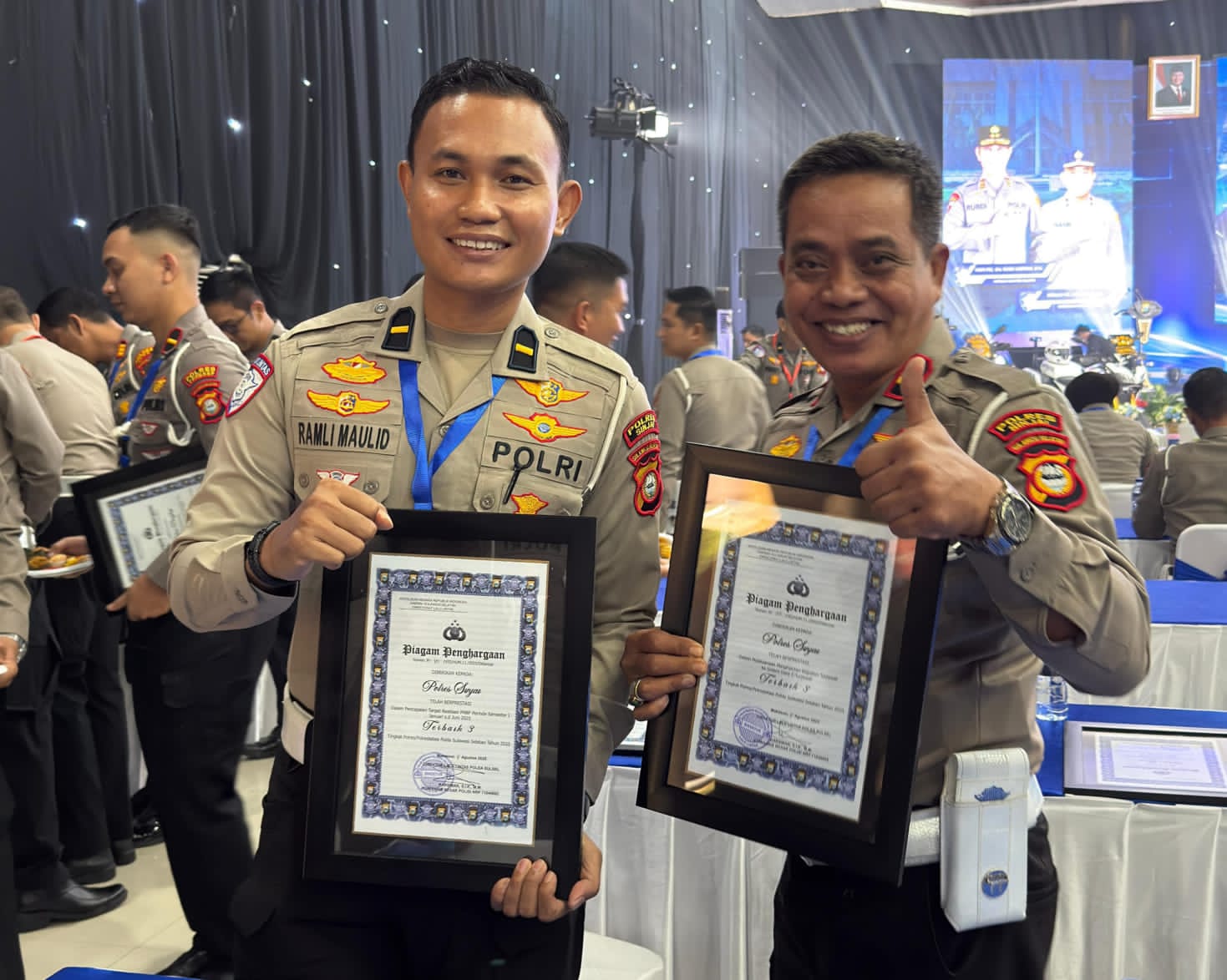Penghargaan itu diserahkan langsung oleh Dirlantas Polda Sulsel Kombes Pol Karsiman, S.I.K., M.M, kepada Kasat Lantas Polres Sinjai Iptu Sukri Liwang didampingi Kanit Regindent Polres Sinjai Ipda Ramli Maulid, yang digelar di Aula Mappaodang Polda Sulsel, Rabu (6/8/2025).