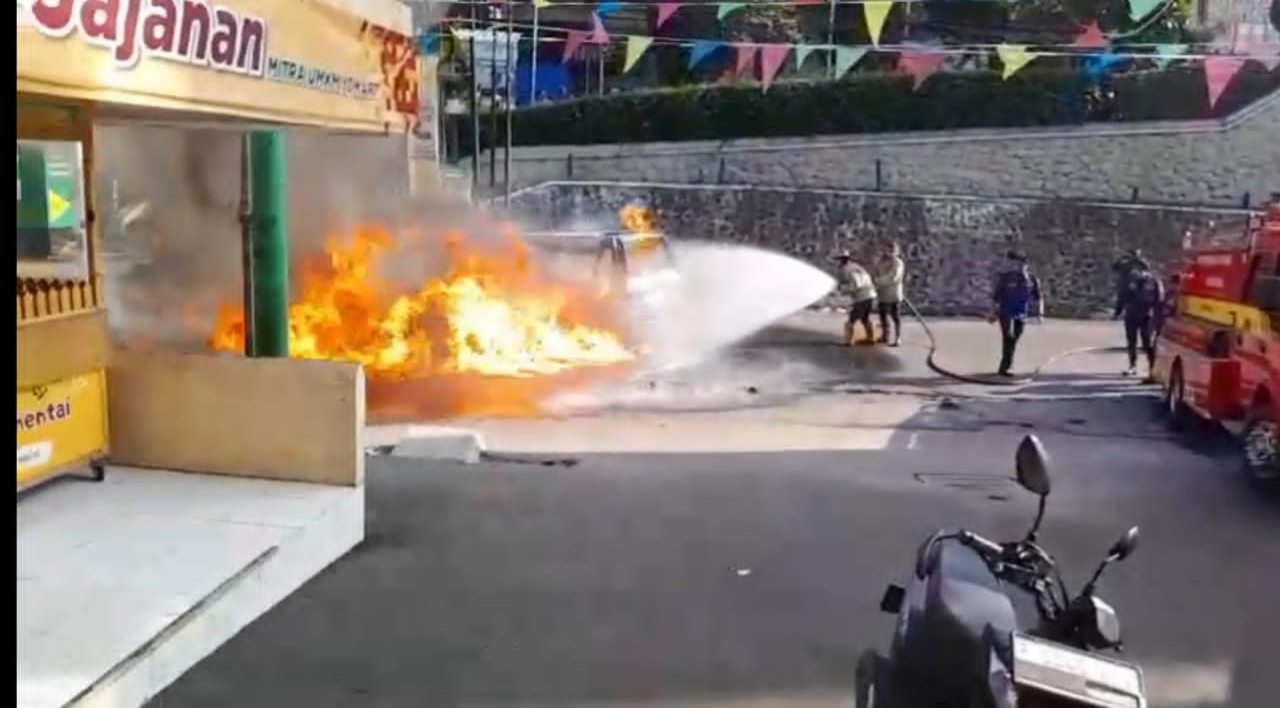 Kabupaten Sukabumi// Dinas Pemadam Kebakaran dan Penyelamatan (DPKP) Kabupaten Sukabumi Posko VII Sukaraja dengan sigap evakuasi sebuah unit angkutan kota (Angkot) trayek Goal Para-Sukabumi terbakar di wilayah Kp. Cibeureum, Desa Pasir Halang, Kecamatan Sukaraja, Kabupaten Sukabumi kamis 07/08/2025.