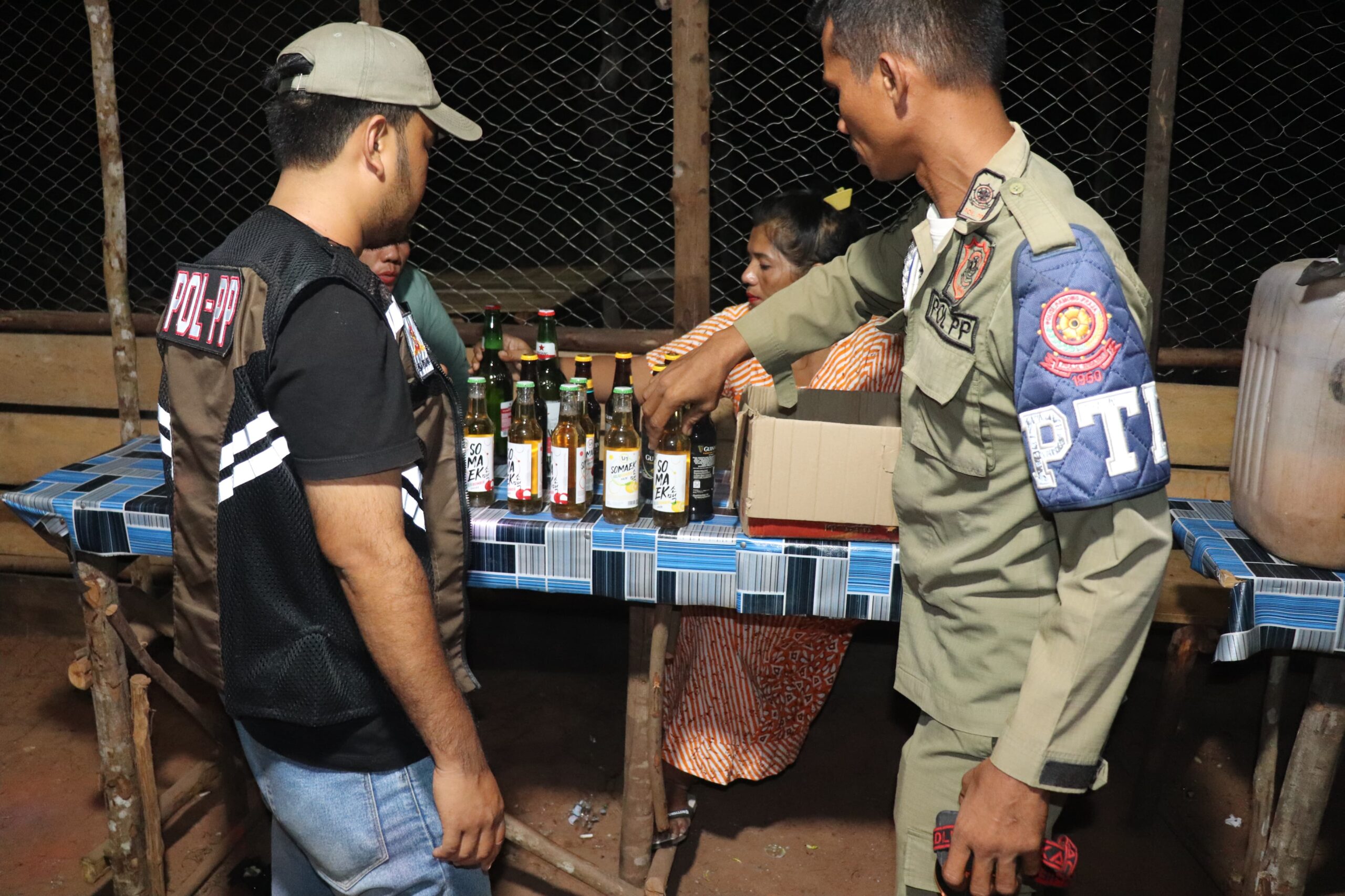 Personel Satpol PP Kabupaten Padang Lawas Utara menyeser sejumlah tempat hiburan malam seperti Cafe Karaoke, dan warung-warung yang menjual minuman beralkohol di Kecamatan Padang Bolak, (09/08/2025) malam.
