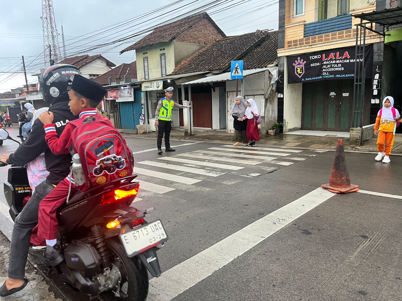 Wujud Pelayanan Prima, Satlantas Polsek Cikijing Rutin Laksanakan Pengaturan Pagi