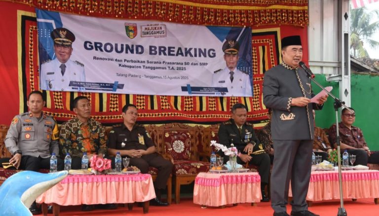 Bupati Tanggamus Drs. H. Moh. Saleh Asnawi, M.A., M.H., melakukan ground breaking renovasi dan perbaikan sekolah dasar (SD) dan sekolah menengah pertama (SMP) di Kecamatan Talang Padang, Jumat (15/8/2025).