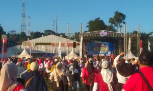 Suasana ceria dan semangat kebangsaan langsung terasa sejak pagi hari. Dimulai dengan senam sehat lalu dilanjutkan pelepasan peserta jalan sehat. Ribuan peserta bersemangat mengikuti rute jalan sehat yang telah ditentukan.
