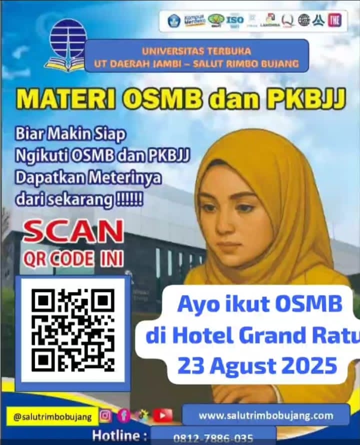 Reformasiaktual.com//Rimbo Bujang-Kegiatan pengenalan sistem pembelajaran di UT ( Universitas Terbuka ) yang menekankan pada belajar mandiri untuk mahasiswa baru, bakal di gelar di Hotel Grand Ratu Kecamatan Rimbo Bujang, Kabupaten Tebo, Pada Sabtu (23/08/2025).