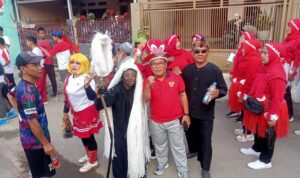 Tak hanya sekadar jalan sehat, warga juga menampilkan berbagai kreasi kostum unik bertema perjuangan dan kebangsaan. Dari barisan ibu-ibu dan anak-anak dengan kostum merah putih, hingga penampilan teatrikal tokoh budaya yang semakin menambah semarak suasana. Salah satu yang paling menarik perhatian adalah atraksi warga yang mengenakan kostum khas menyerupai sosok legenda rakyat, lengkap dengan properti unik yang mengundang tawa dan tepuk tangan penonton.