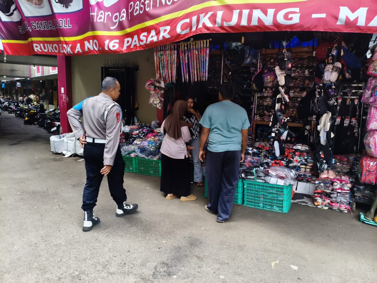 Majalengka – Ps. Panit Provost Polsek Cikijing Polres Majalengka Polda Jabar Aiptu Memen Suparman, S.H. melaksanakan patroli serta menyapa para pedagang dan pengunjung Pasar Cikijing, Senin (25/08/2025).