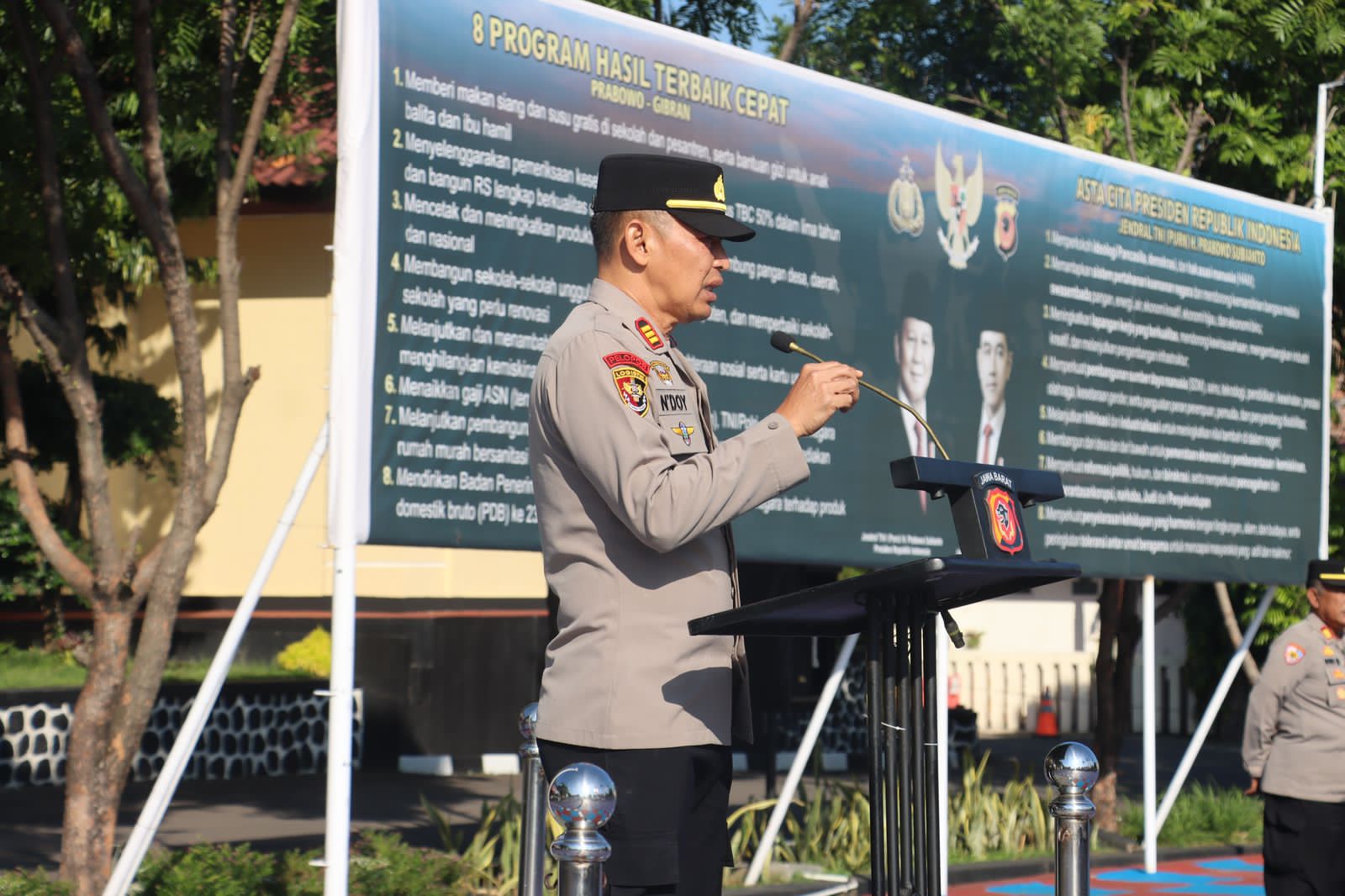 Dalam arahannya, Kabag Log menyampaikan arahan Bapak Kapolres menekankan sejumlah program prioritas kepolisian, mulai dari dukungan terhadap ketahanan pangan nasional, pembangunan dapur bergizi gratis, hingga peningkatan kualitas pelayanan publik dan profesionalisme anggota.