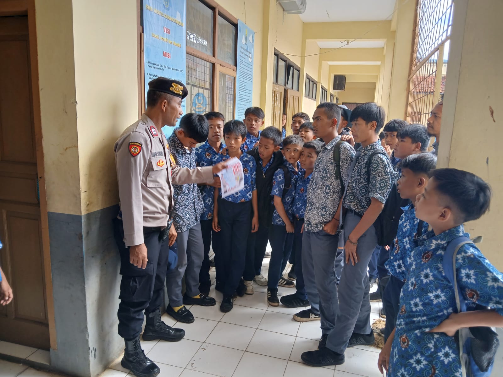 “Generasi muda harus menjadi pelopor keselamatan berlalu lintas. Patuhi aturan, gunakan helm standar, hindari ugal-ugalan, dan jangan menggunakan kendaraan jika belum memiliki SIM,” ujar salah satu Polwan saat menyampaikan materi.