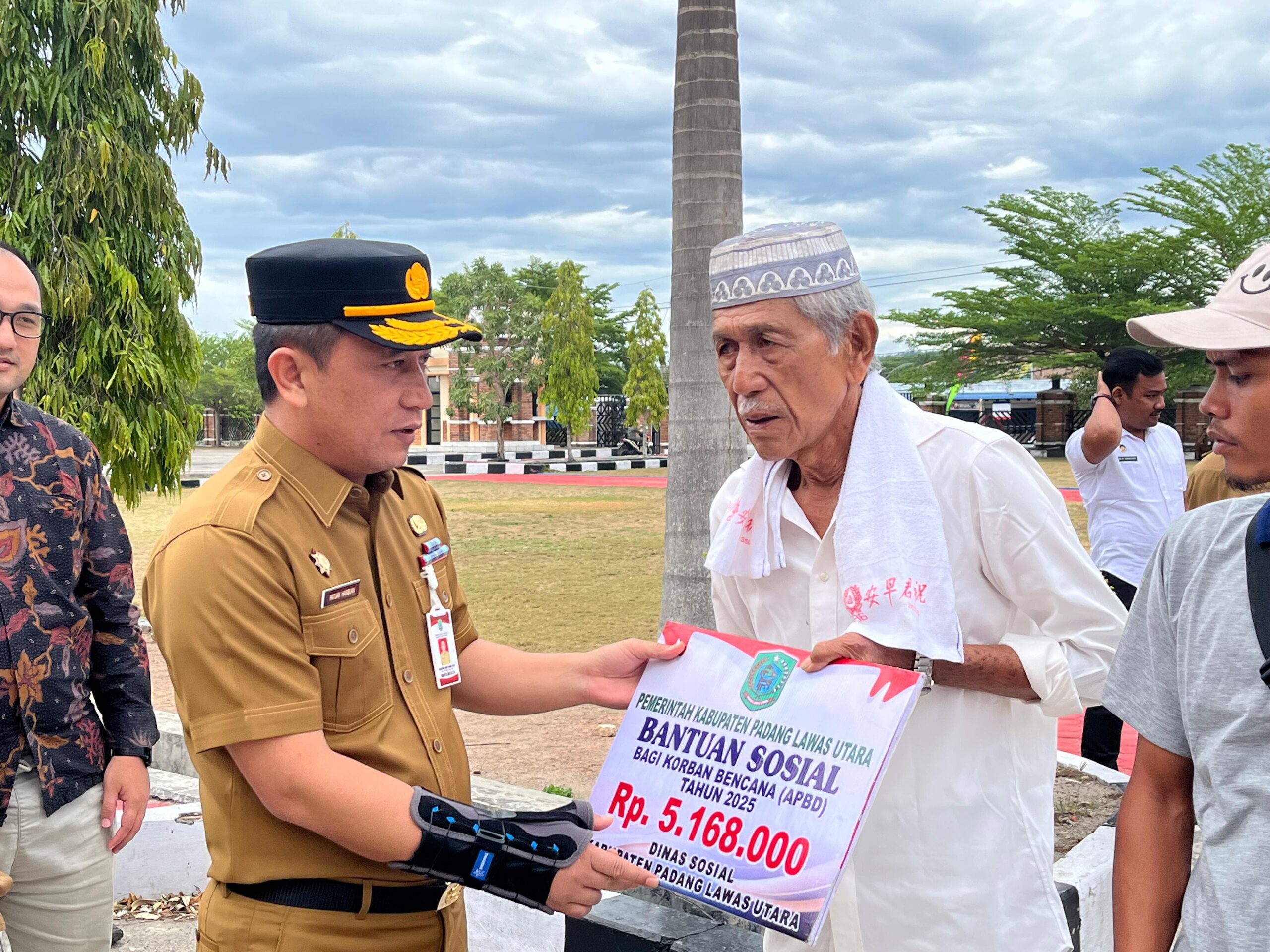 Paluta //Reformasi Aktual.com- Bupati Padang Lawas Utara H. Reski Basyah Harahap, S.STP., M.Si, Diwakili Sekretaris Daerah Patuan Rahmat Syukur P. Hasibuan, S.STP., MM., Didampingi Para Asisten, Kadis Sosial, Kaban BPKPD, Direktur RSUD Gunungtua, Kasatpol pp, Kadis Pariwisata, Camat Simangambat, Kadis Kominfo, memberikan Bantuan Sosial kepada Korban Bencana Kebakaran di Wilayah Kabupaten Padang Lawas Utara, Senin (1/09/2025).
