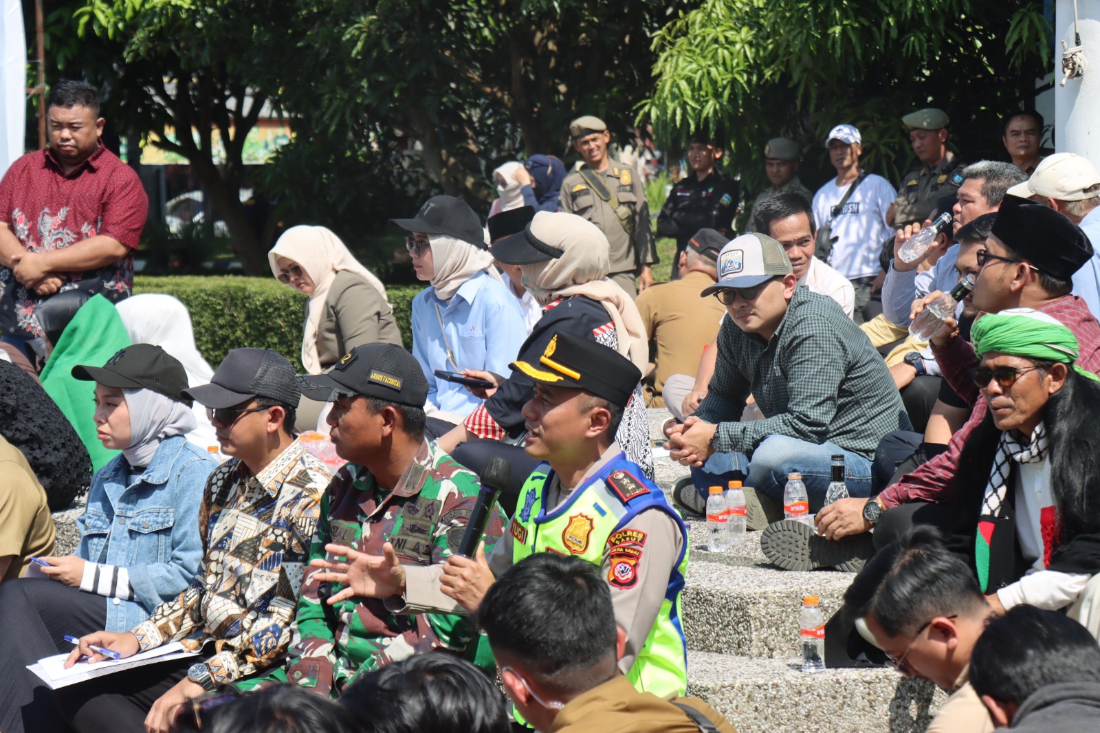Suasana semakin cair ketika Kapolres Garut bersama Forkopimda memilih duduk bersila di tengah lapangan Setda Garut, bergabung dengan mahasiswa dan masyarakat untuk berdialog secara langsung dan terbuka.