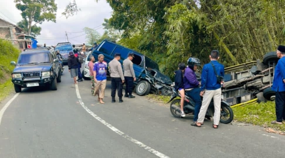 Reformasiaktual.com//SUKABUMI – Sebuah kendaraan jenis truk Colt Diesel bernomor polisi F 8530 SK bermuatan bata hebel, mengalami mati mesin saat melintas di jalan menanjak dan berbelok di wilayah Kecamatan Nyalindung Sukabumi. Akibatnya truk tersebut mundur dan menabrak tiga kendaraan yang ada dibelakangnya.