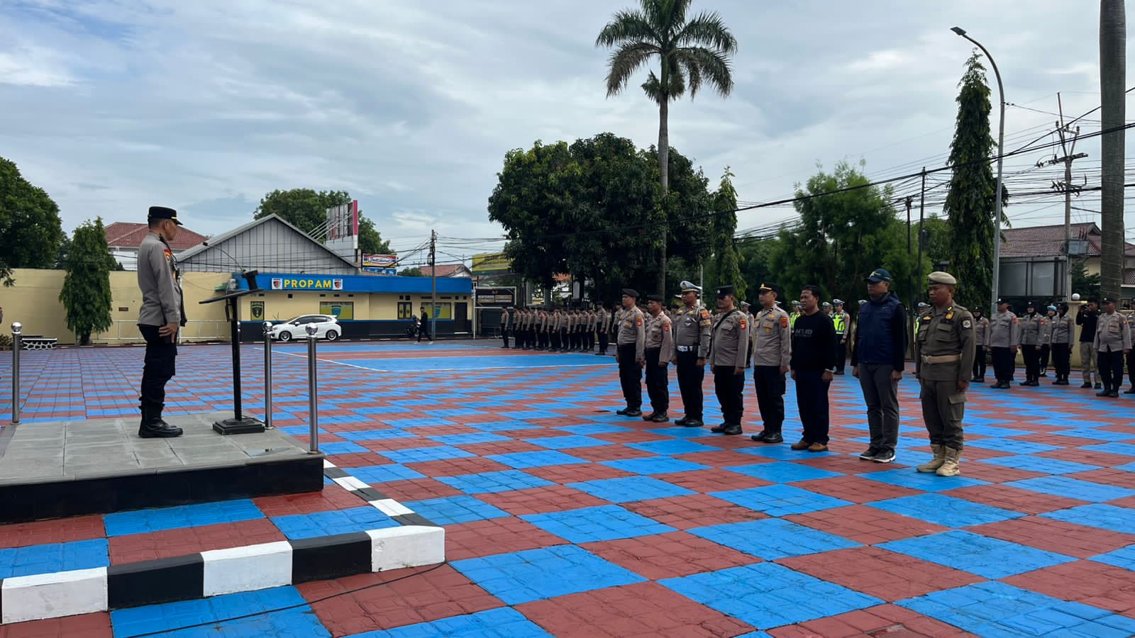 Majalengka, Jajaran Polres Majalengka melaksanakan apel kesiapan pengamanan aksi unjuk rasa massa aliansi yang tergabung dalam SP/SB dan DPC FS PMI Kabupaten Majalengka yang akan melakukan Aksi Unras depan Kantor DPRD Kabupaten Majalengka, Kamis (11/9/2025).