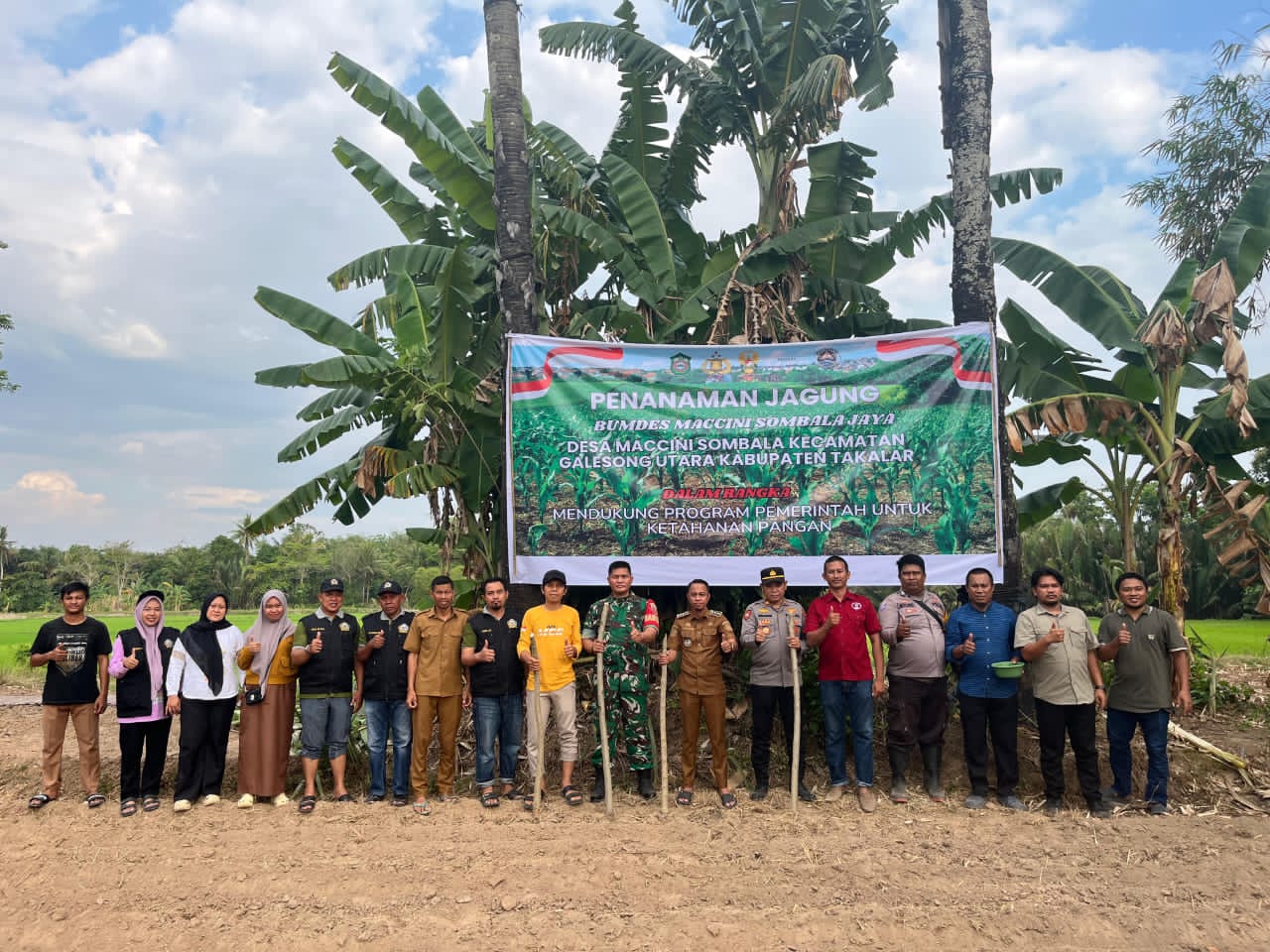 TAKALAR – Dalam rangka mendukung Program II Ketahanan Pangan Nasional tingkat desa pada kuartal 3, Bhabinkamtibmas Desa Maccini Sombala, Bripka Muh. Said, melaksanakan kegiatan penanaman jagung bersama pemerintah desa dan BUMDES Maccini Sombala pada Senin, 15 September 2025, pukul 16.32 WITA.