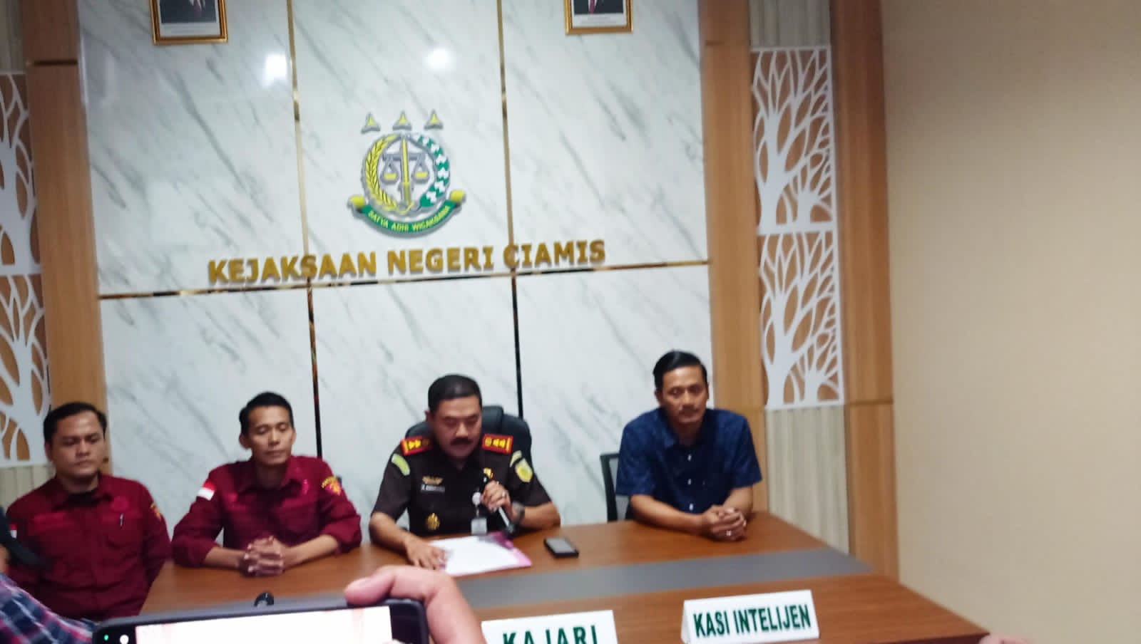 Kepala Kejari Ciamis, Sudaryono, S.H dalam konferensi pers,di Aula kejaksaan Negeri Ciamis Rabu (17/09/2025).