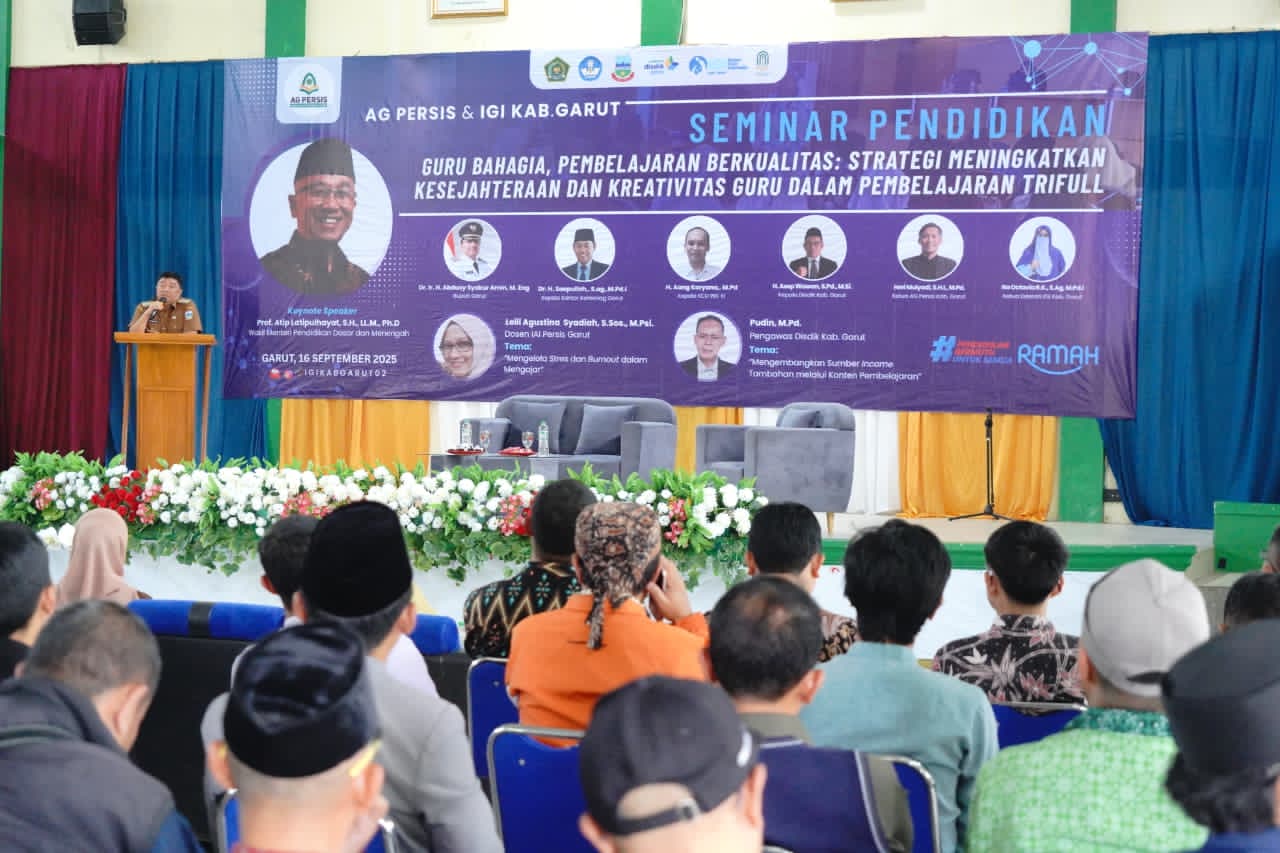 ‎Reformasiaktual.com//GARUT, Bupati Garut, Abdusy Syakur Amin, membuka Seminar Pendidikan bertema “Guru Bahagia, Pembelajaran Berkualitas: Strategi Meningkatkan Kesejahteraan dan Kreativitas Guru dalam Pembelajaran Triful” di Auditorium IAIPI Garut, Kecamatan Tarogong Kidul, Kabupaten Garut, Selasa (16/9/2025).