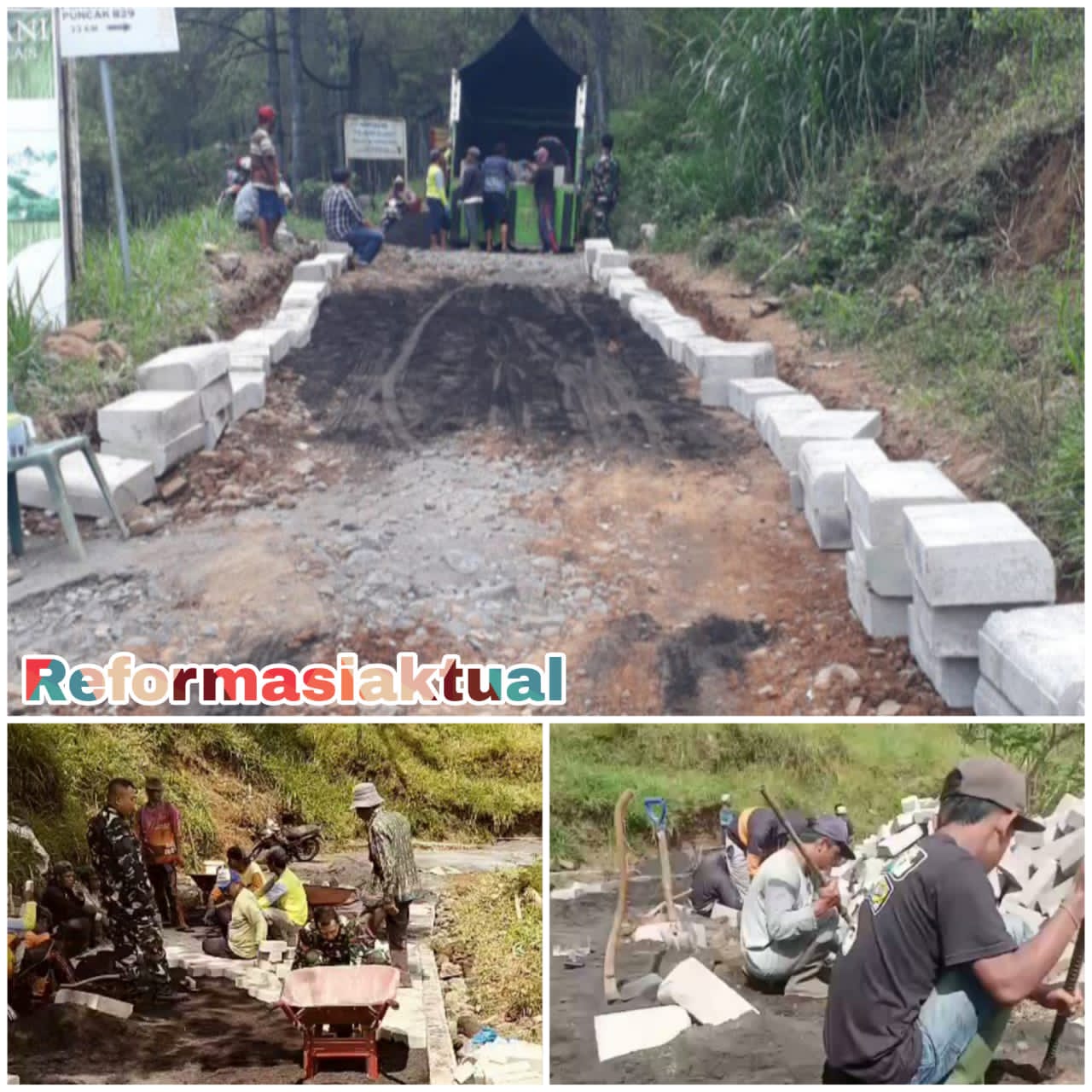 Warga Garcep Perbaiki Jalan Rusak dijalan Lintas Sariwani Ledok Ombo Sukapura
