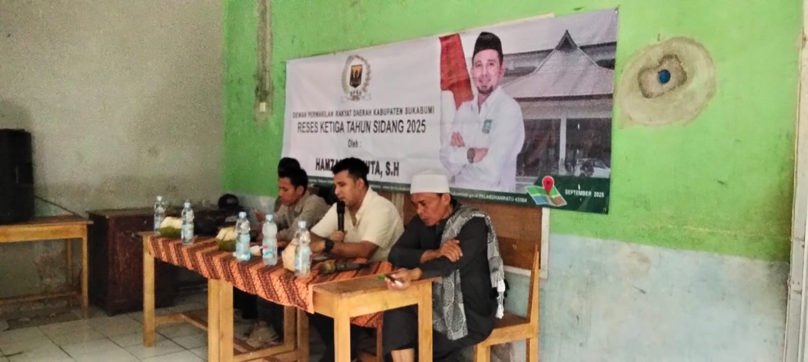 Kabupaten Sukabumi – Ketua Komisi II DPRD Kabupaten Sukabumi dari Fraksi Partai Kebangkitan Bangsa (PKB), Hamzah Gurnita SH, melaksanakan kegiatan Reses ke-III Tahun Sidang 2025 di Kampung Gunung Buleud RT 18/RW 12, Desa Loji, Kecamatan Simpenan, Jumat (19/9/2025).