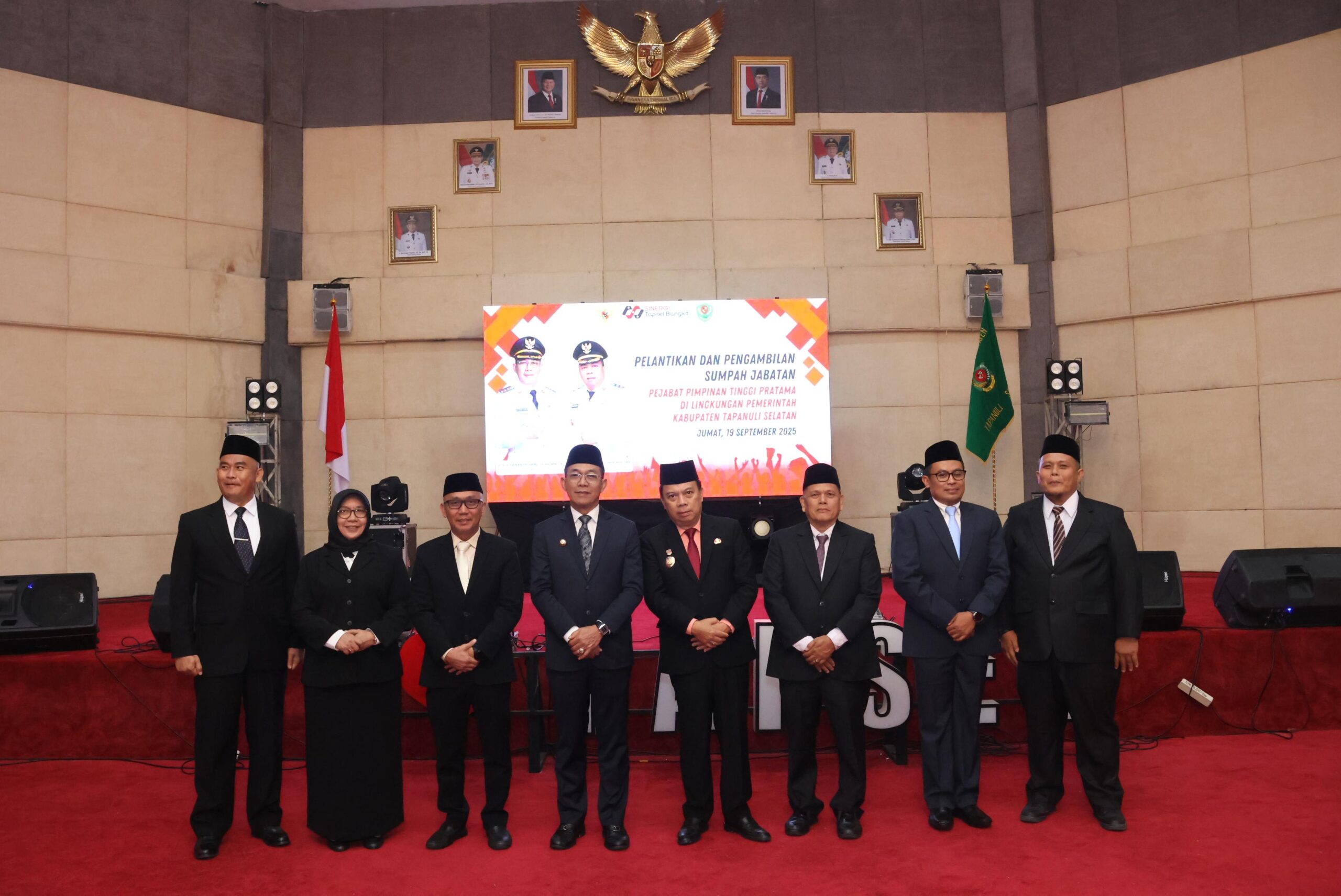 Tapanuli Selatan – Bupati Tapanuli Selatan (Tapsel) H. Gus Irawan Pasaribu secara resmi melantik dan mengambil sumpah/janji lima pejabat Pimpinan Tinggi Pratama (Eselon II) di Gedung Serba Guna Sarasi, Komplek Perkantoran Pemerintah Tapsel, Jalan Prof. Lafran Pane, Sipirok, Jumat (19/9/2025).
