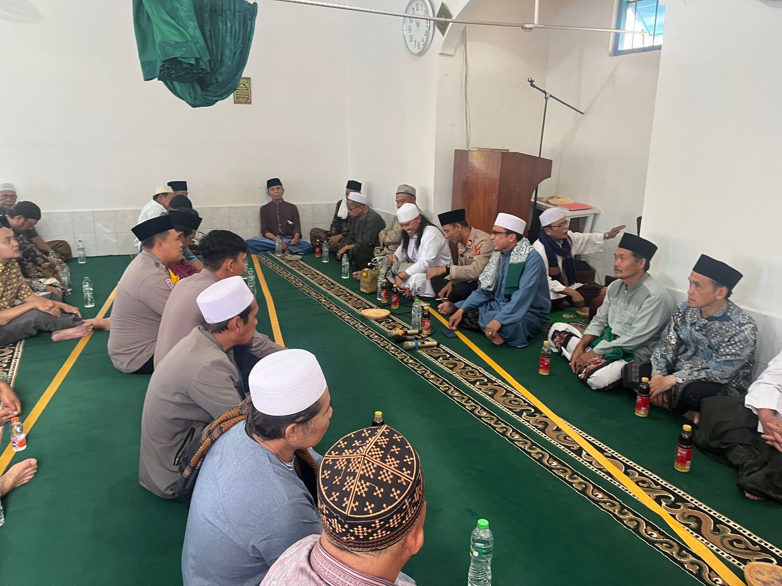 Majalengka – Guna memperkuat ukhuwah islamiah, Kapolsek Cikijing Polres Majalengka Polda Jabar, AKP Asep Rusmawan, S.H. beserta Anggota menghadiri acara peringatan Maulid Nabi Muhammad SAW. 1447 H. tahun 2025 yang bertempat di Masjid Jami Al-Ma’arif Kecamatan Cikijing, Kabupaten Majalengka, Minggu (21/09/2025).