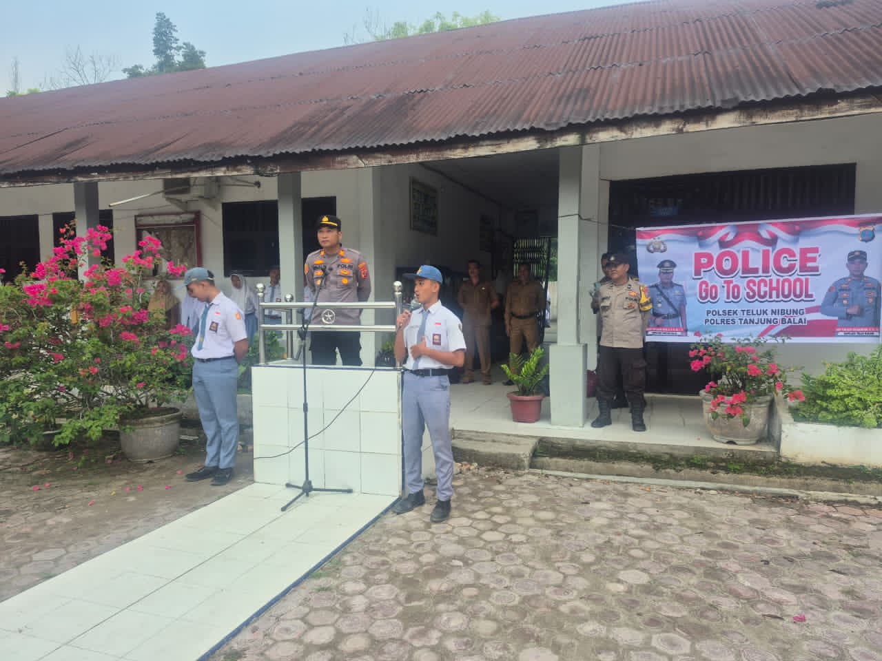 Kegiatan Police Goes to School dipimpin oleh Kapolsek Teluk Nibung AKP Rinaldi, S.H., M.H. Kapolsek Teluk Nibung menyampaikan kegiatan ini merupakan salah satu bentuk pendekatan polisi untuk menjangkau pelajar secara langsung.