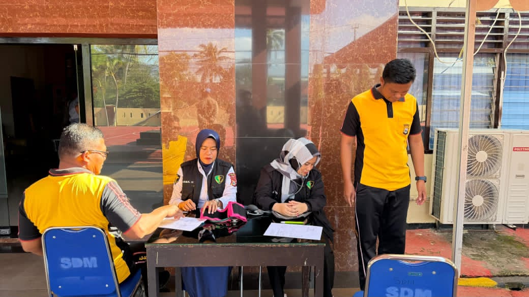 “Sebelum dilaksanakan Tes Kesemaptaan Jasmani (TKJ) seluruh personel diharuskan untuk melaksanakan pemeriksaan kesehatan oleh tim dari klinik Polres Sinjai, guna mengetahui kesehatan dan kesiapan dari personel yang akan melaksanakan tes kesemaptaan. ujarnya.