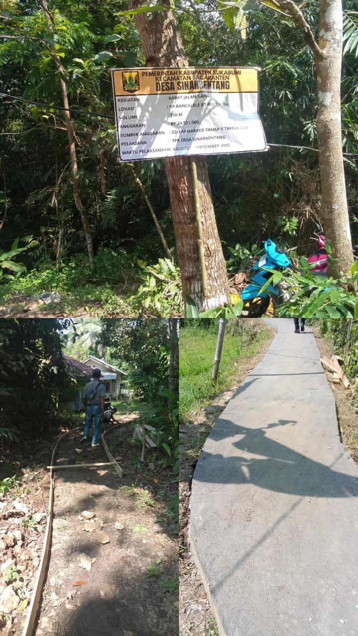 Sukabumi – Kepala Desa Sinarbentang, Kecamatan Sagaranten, Kabupaten Sukabumi, Jawa Barat, merealisasikan Dana Desa (DD). Earmarked tahap dua Tahun Anggaran 2025 untuk pembangunan infrastruktur. Salah satu kegiatan yang dilakukan adalah pengecoran rabat beton jalan gang lingkungan Desa di kampung rancalele RT 003 RW 001, Kedusunan.