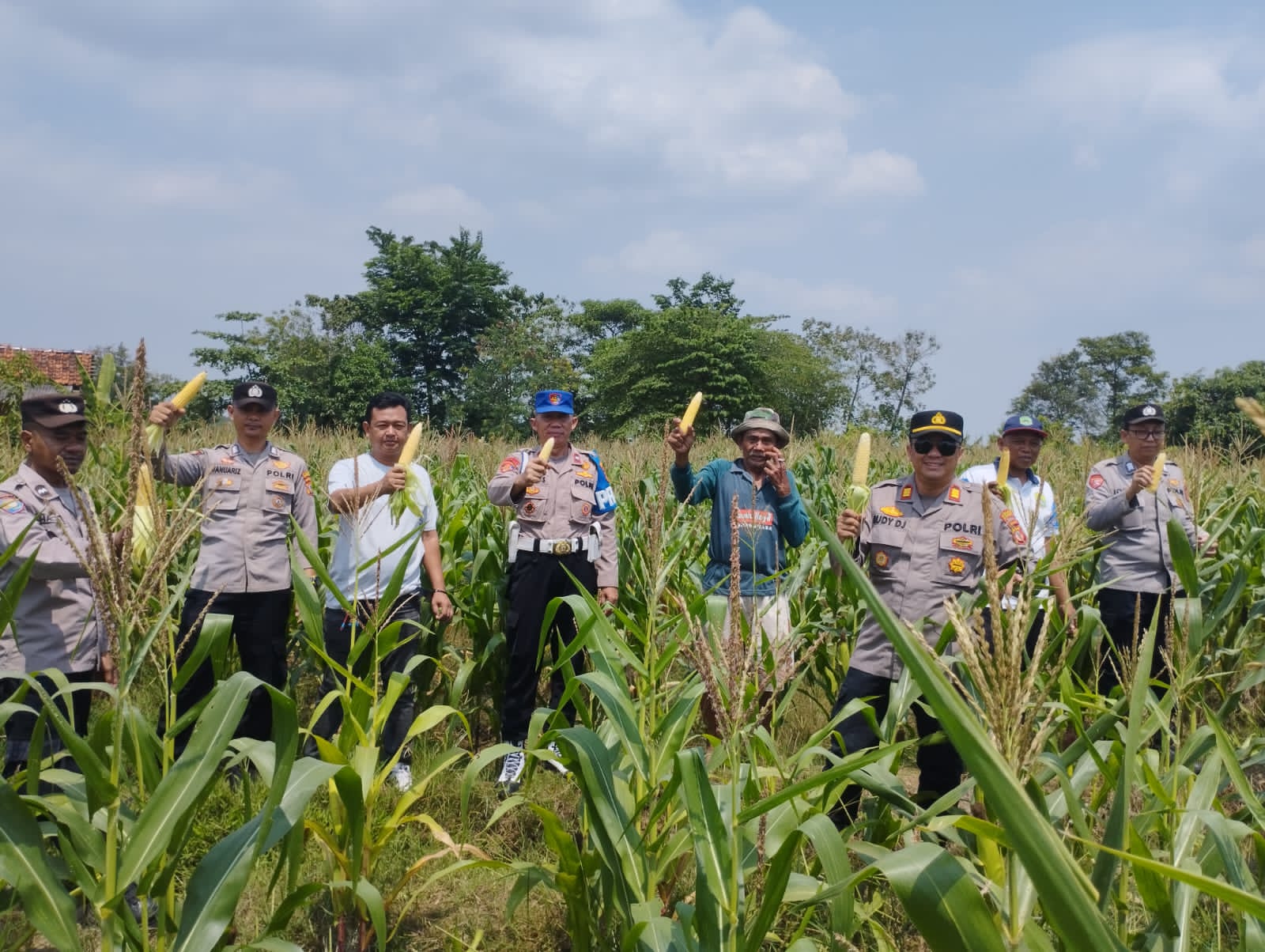 Majalengka, Polsek Jatiwangi Polres Majalengka melaksanakan Panen Raya Jagung Kuartal III yang digelar serentak secara virtual di seluruh provinsi, kabupaten, dan kota se-Indonesia, dengan pusat kegiatan di Kabuaten Majalengka Polda Jabar, Sabtu (27/9/2025).