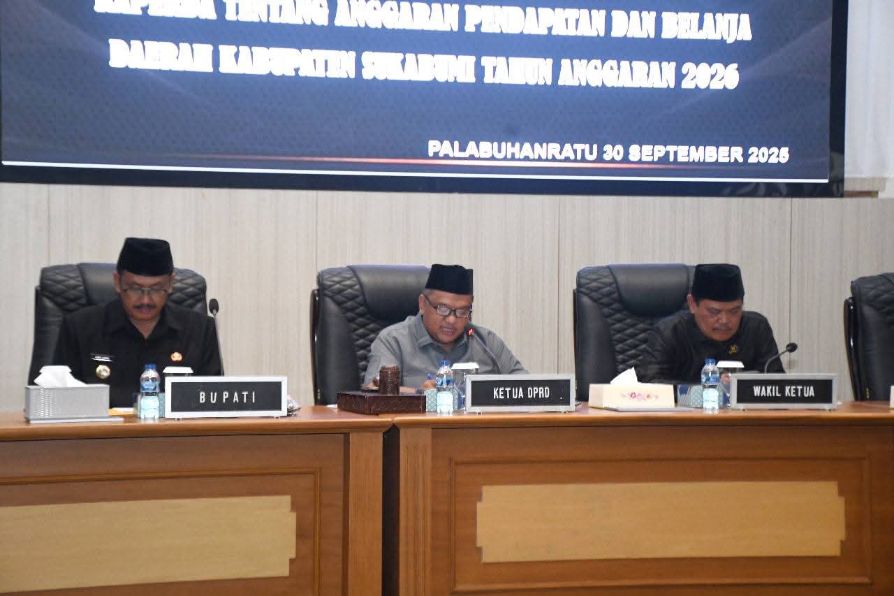 Refirmasiaktual.com//Bupati Sukabumi H Asep Japar menyampaikan nota pengantar Rancangan Peraturan Daerah (Raperda) tentang Anggaran Pendapatan dan Belanja Daerah (APBD) Kabupaten Sukabumi Tahun Anggaran 2026 dalam Rapat Paripurna DPRD, di Ruang Sidang DPRD Kabupaten Sukabumi, Selasa (30/9/2025).