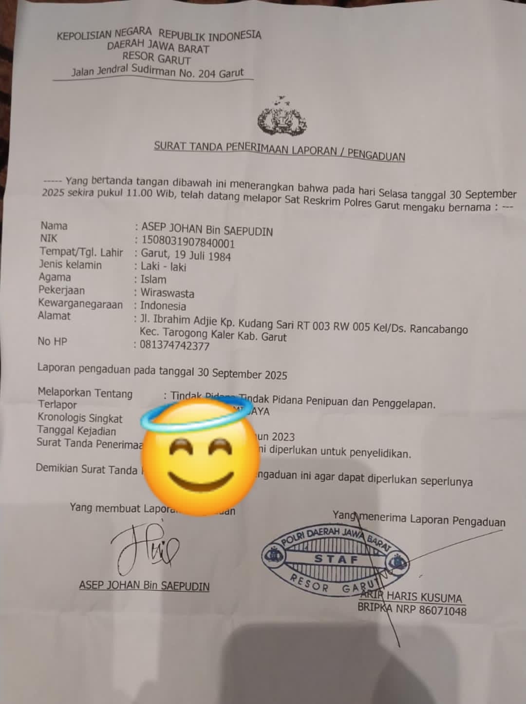 Garut — Seorang warga Garut bernama Asep Johan, warga Jalan Ibrahim Adjie, Desa Rancabango, Kecamatan Tarogong Kaler, kembali mendatangi Mapolres Garut pada Selasa (30/09/2025) sekitar pukul 11.00 WIB untuk melaporkan dugaan penipuan dan penggelapan yang dilakukan oleh seorang oknum ASN UPT Dinas PUPR berinisial F.A.