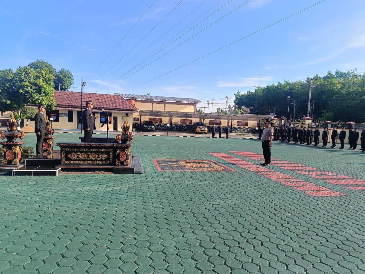Bertindak selaku Inspektur Upacara yakni Kapolres OKU Timur, AKBP Adik Listiyono, S.I.K., M.H.. Upacara diikuti oleh seluruh personel Polres OKU Timur beserta jajaran Polsek, serta dihadiri Wakapolres OKU Timur Kompol Robhinson, S.H., S.I.K., para pejabat utama, dan Wakil Ketua Bhayangkari Cabang OKU Timur bersama anggota.