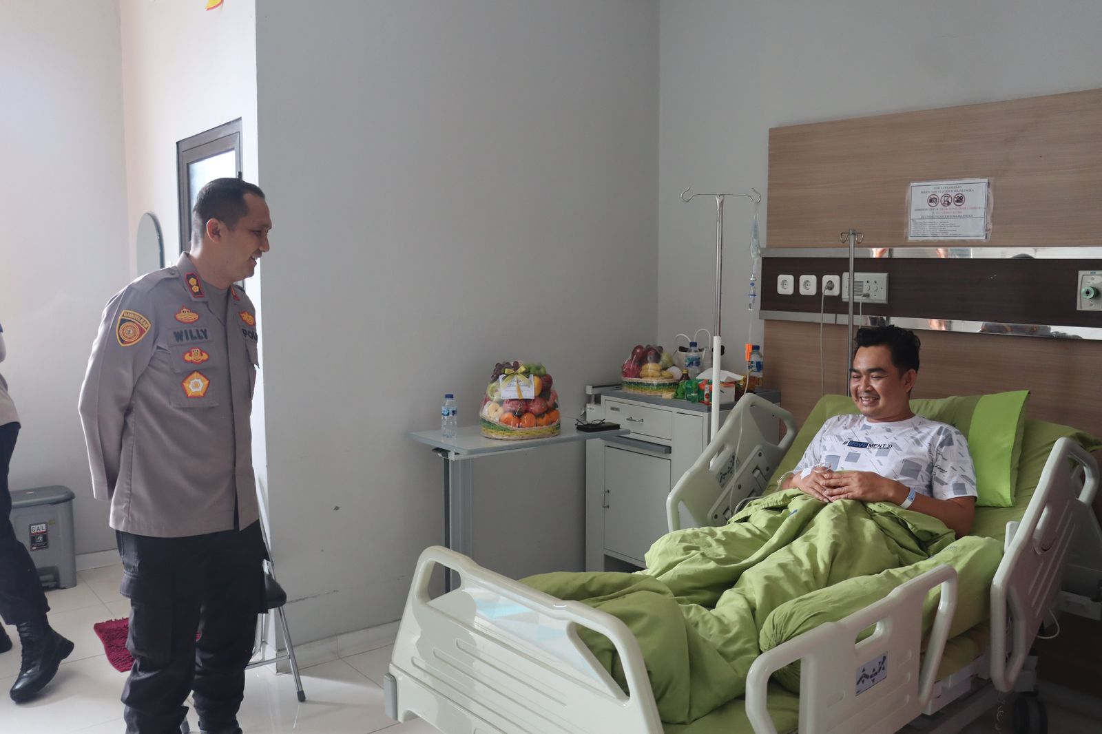 Dalam kesempatan itu, Kapolres Majalengka menjenguk Kanit Reskrim Polsek Cikijing, Ipda Iip Lifda Sugilar, S.H., yang saat ini sedang menjalani perawatan. Turut mendampingi dalam kegiatan tersebut, Kapolsek Cikijing Asep Rusmawan, S.H., Kanit Regident Sat Lantas Ipda Aryanto, S.H., PS Kasi Dokkes Aipda Ade Indra, S.Kep., serta dokter mitra dr. Egy Primi Fadhilah.
