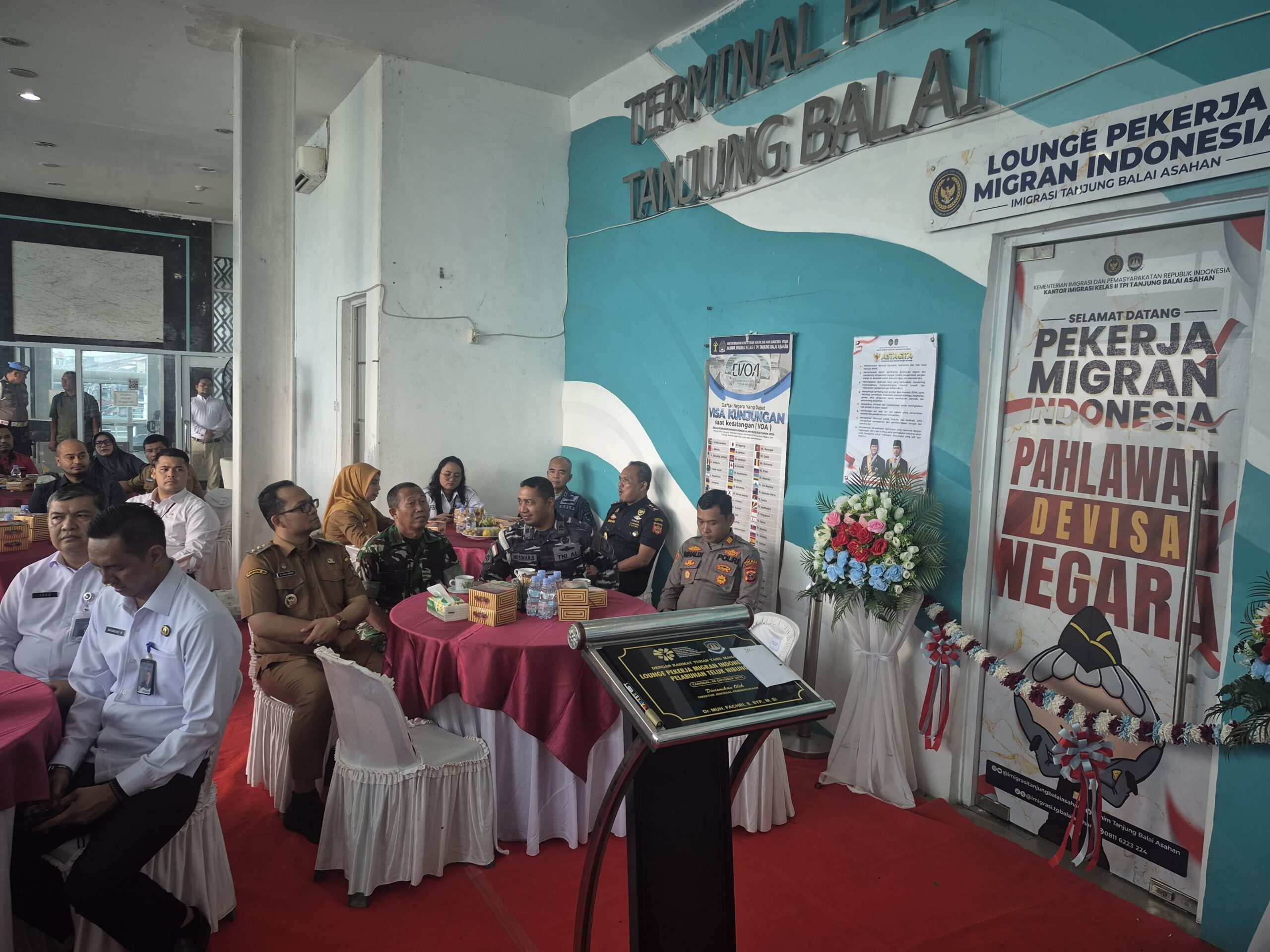 TANJUNG BALAI//Reformasi aktual.com Peresmian Lounge Pekerja Migran Indonesia (PMI) Pelabuhan Teluk Nibung Kantor Imigrasi Kelas II TPI Tanjung Balai Asahan turut dihadiri Kapolsek Teluk Nibung AKP Rinaldi, S.H., M.H Senin (6/10/2025).