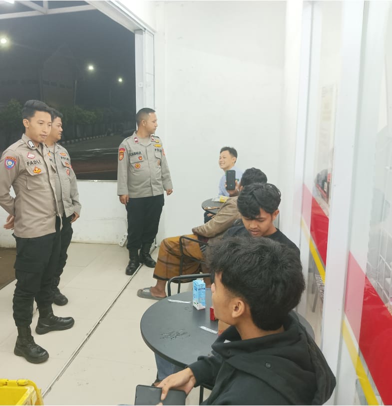 Majalengka – Polsek Cikijing Polres Majalengka Polda Jabar melalui Ps. Panit Samapta l Aiptu Eman Subagja bersama Ka SPKT I Aipda Asep Nugroho dan Bhabinkamtibmas Brigadir M. Fadli N, S.H. melaksanakan patroli dan menyambangi pemuda di Alfamart Desa Sukamukti, Kecamatan Cikijing, Kabupaten Majalengka, Rabu (08/10/2025).