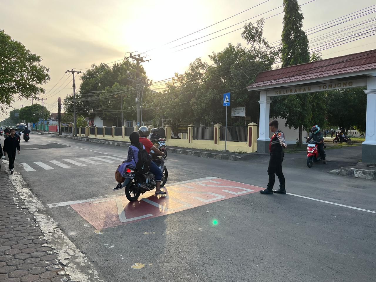 Selain melakukan pengaturan, personel Sat Samapta juga memberikan imbauan kepada pengendara agar selalu tertib berlalu lintas dan mematuhi rambu-rambu demi keselamatan bersama.