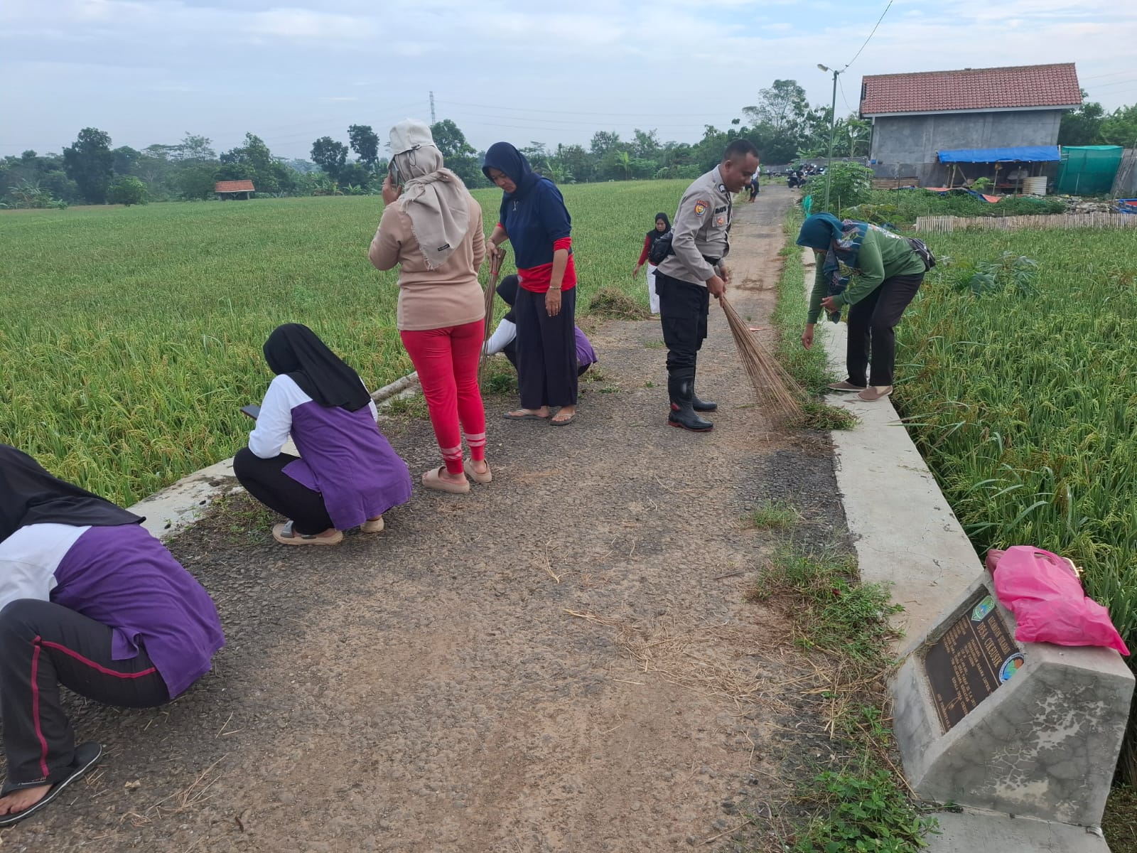 BHABINKAMTIBMAS POLSEK SUKAHIJI BERSAMA TNI DAN WARGA GELAR GOTONG ROYONG DI DESA CIKESIK