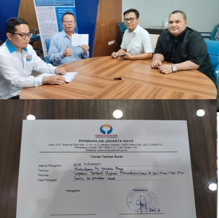 Bekasi, Senin 13 Oktober 2025 pukul 15.30 — Dugaan hilangnya dokumen tanah Girik C No.1350 atas nama almarhum Aliyas Bin Aing resmi dilaporkan ke Ombudsman Republik Indonesia. Laporan tersebut diajukan oleh kuasa ahli waris, H.M. Sulaeman, didampingi pimpinan media SBI dan Bhayangkara News.