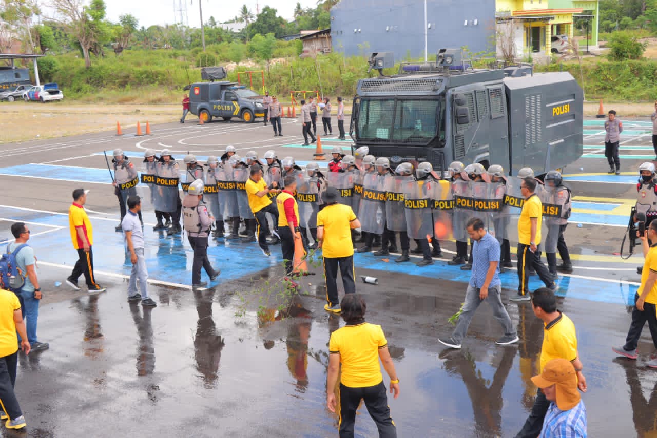 Dalam kegiatan tersebut, personel dilatih melakukan tahapan-tahapan pengamanan mulai dari upaya negosiasi, pengaturan formasi pasukan, hingga penanganan massa secara bertahap dan terukur sesuai dengan eskalasi situasi di lapangan.
