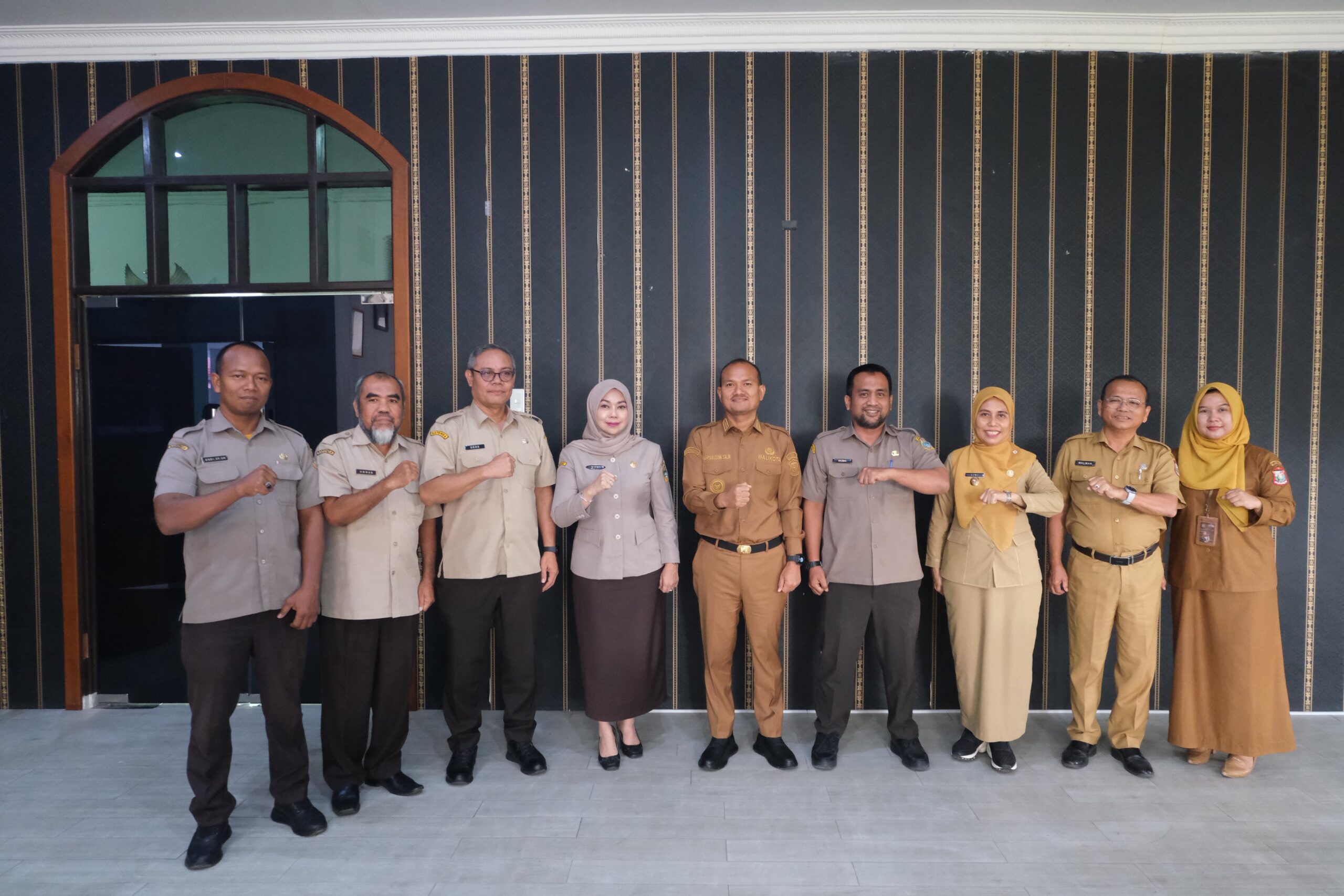 Wali Kota Tanjungbalai, Mahyaruddin Salim didampingi Sekretaris Daerah Nurmalini Marpaung, Asisten Administrasi dan Umum Walman Riadi P Girsang, Kabid Pendapatan Ade Faradilla menerima kunjungan audiensi Kepala UPT Samsat Tanjungbalai beserta jajaran, Selasa (14/10/2025) di ruang kerjanya, Kantor Wali Kota Tanjungbalai