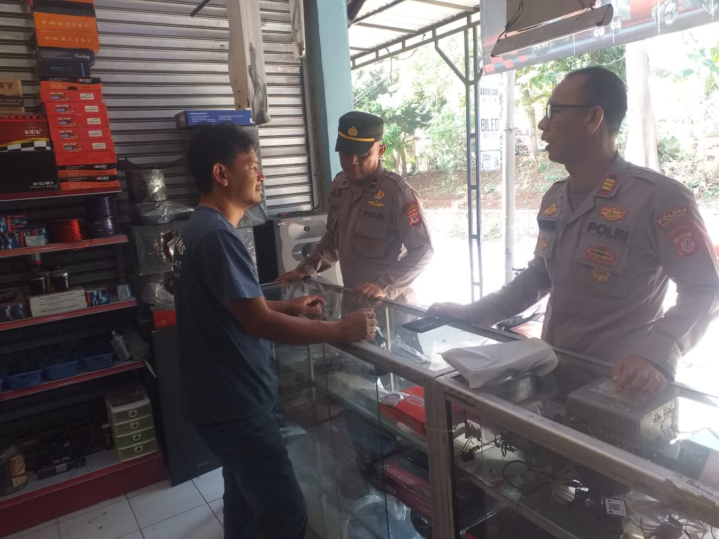 Majalengka – Kapolsek Cikijing AKP Asep Rusmawan, S.H. didampingi Panit Samapta II IPDA D. Yusuf, S.Sos., M.Si., menyambangi Toko Audio Elektronik yang berada di desa Banjaransari guna menyampaikan imbauan Kamtibmas kepada pemilik toko tersebut, Sabtu (18/10/2025).