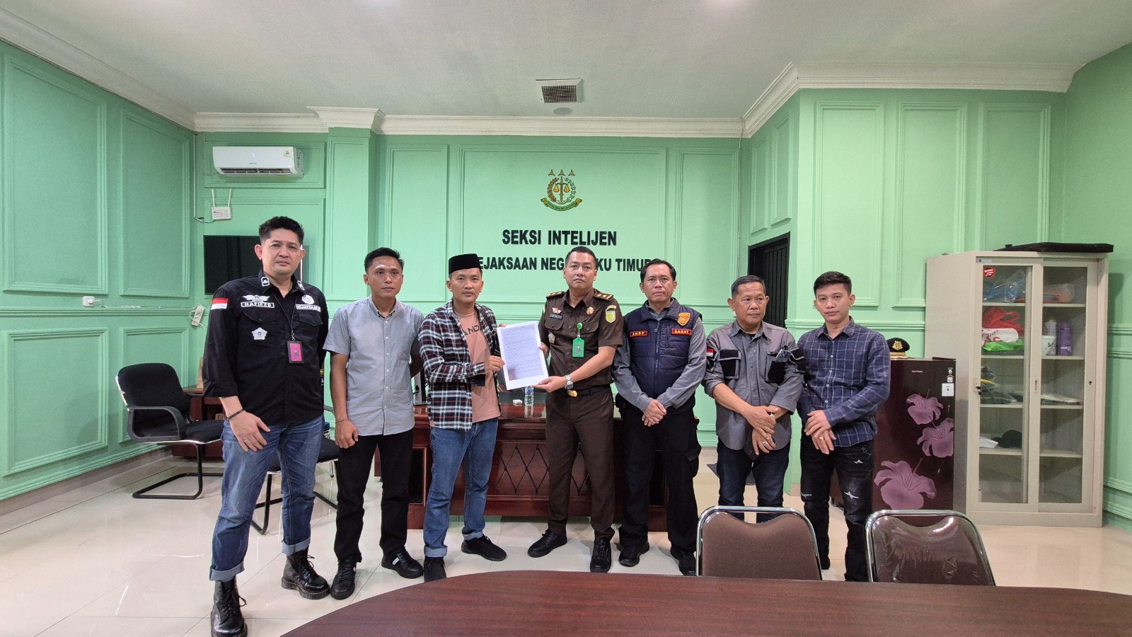 Selanjutnya setelah melakukan orasi singkat tersebut, massa aksi sebanyak 5 (lima) orang didampingi oleh Personil Polri dan TNI langsung beraudiensi dan diterima Kepala Kejaksaan Negeri OKU Timur Oktafian Syah Effendi, S.H, M.H yang diwakili langsung oleh Kasi Intelijen Aditya C Tarigan, S.H dan Kasi Pidsus Kejaksaan Negeri OKU Timur Hafiedzs, S.H, M.H, bertempat di ruang kerja Kasi Intelijen.