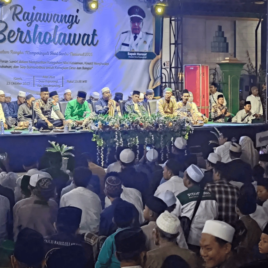Acara “Rajawangi Bersholawat” diikuti oleh ratusan masyarakat, tokoh agama, serta para santri dari berbagai wilayah di Kecamatan Leuwimunding. Kegiatan ini berlangsung dengan penuh khidmat dan semangat kebersamaan dalam memperingati peran santri sebagai garda terdepan penjaga keutuhan bangsa dan penerus nilai-nilai keislaman yang damai.