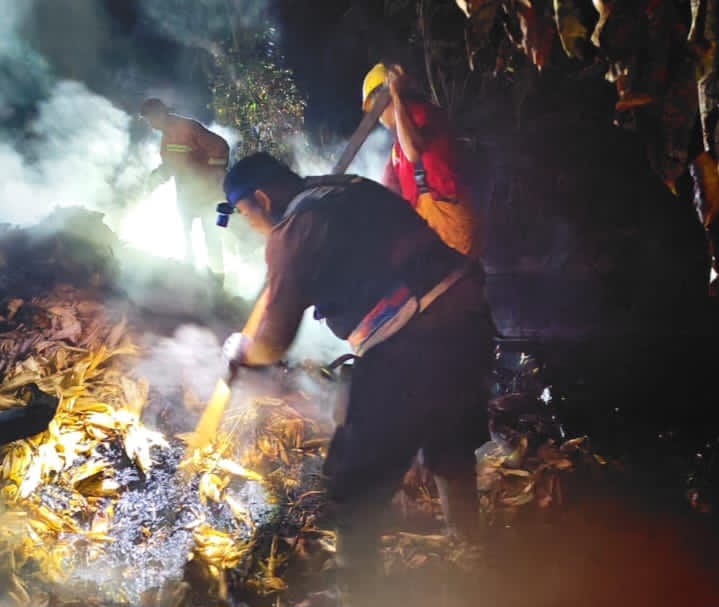 Dengan penuh semangat, Bripka Ilham Nur bersama warga dan petugas pemadam kebakaran berjibaku memadamkan kobaran api menggunakan alat seadanya, termasuk cangkul untuk menarik material kayu dan kulit jagung yang terbakar.